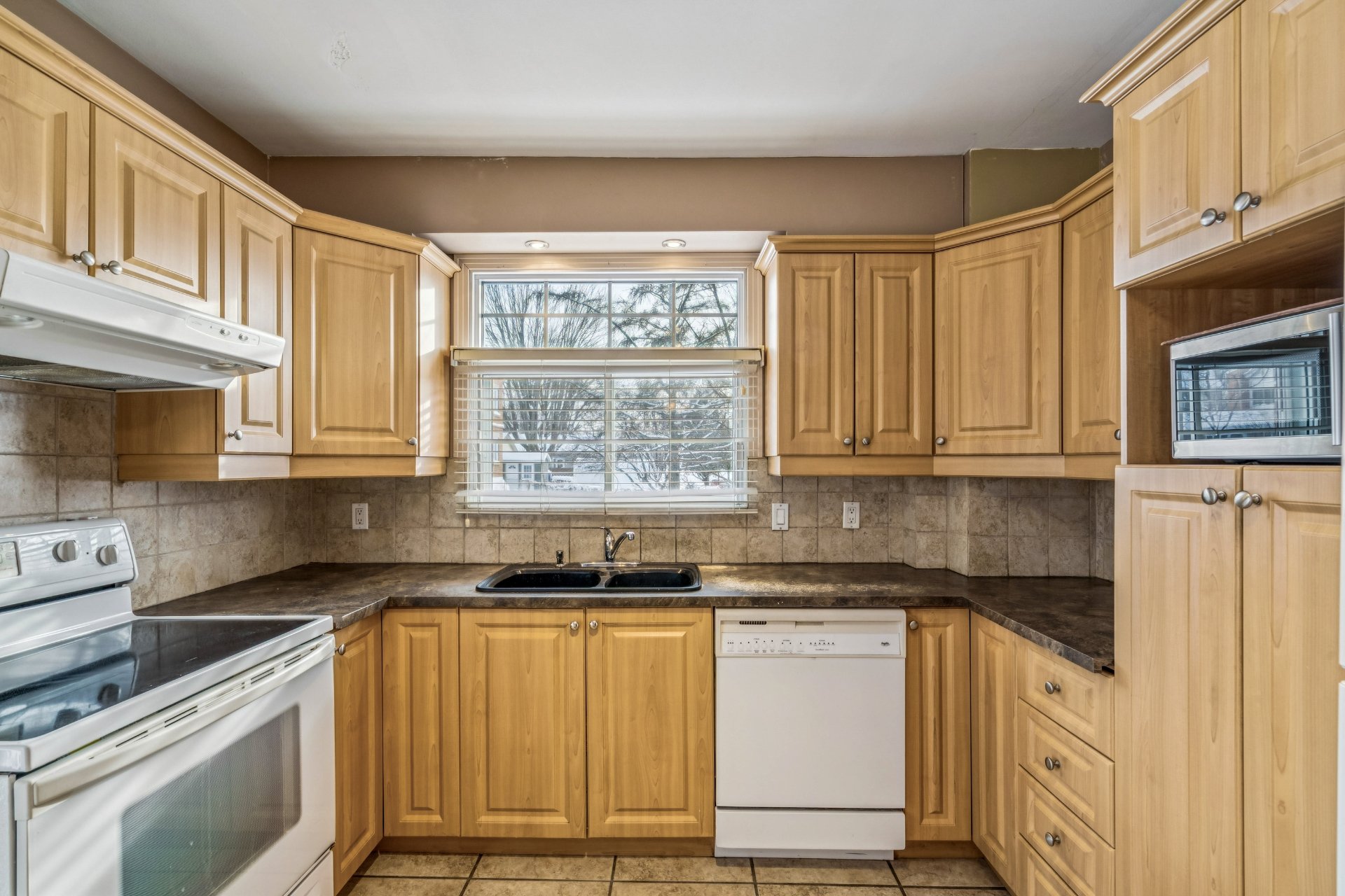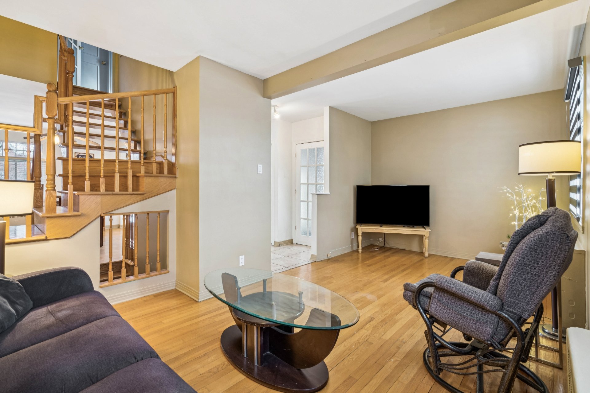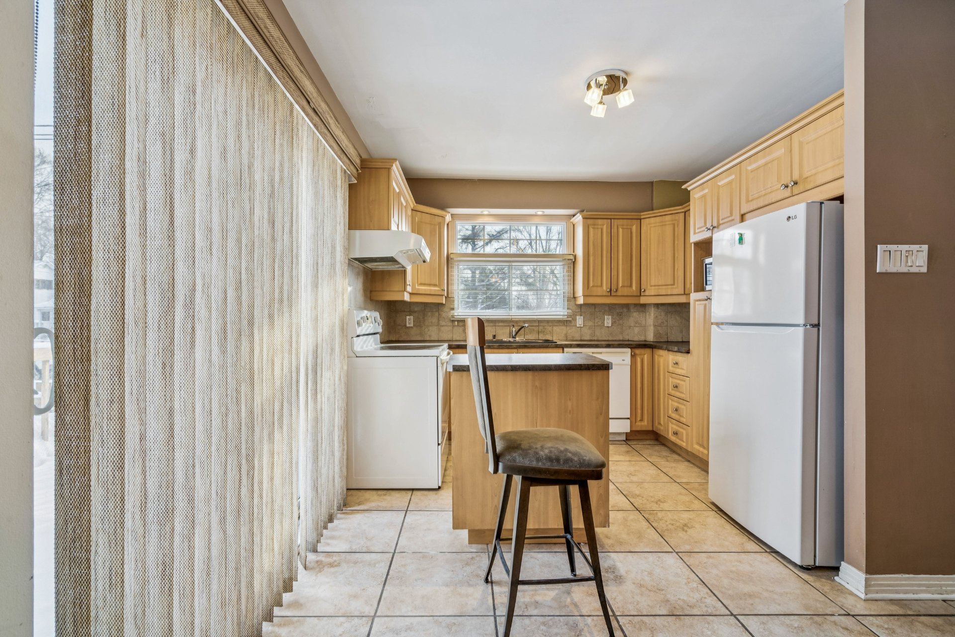 | Les stores, luminaires et ventilateur, poêle, frigidaire, laveuse et sécheuse. table cuisine avec chaises, trois lampes et trois tables de salon, set de chambre a l'étage. | |